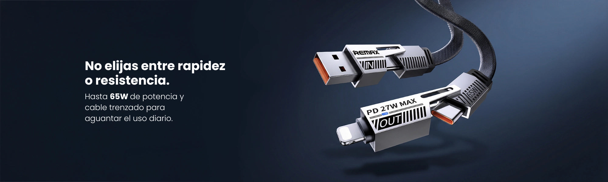 Su diferencial está en la combinación de potencia y durabilidad: ofrece hasta 65W (en USB-C a USB-C) y un diseño trenzado premium que resiste el uso real del día a día. En otras palabras: menos desorden, más compatibilidad, y una experiencia mucho más cómoda.