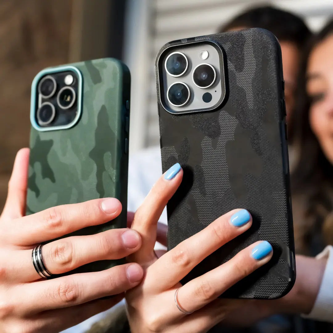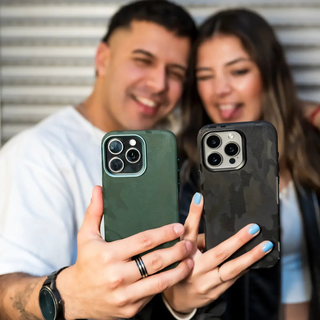 La Carcasa MagSafe Camo Edition combina estilo militar y funcionalidad en un diseño moderno disponible en negro y verde. Su patrón de camuflaje aporta un look urbano y audaz, mientras su estructura de fibras sintéticas y aluminio ofrece protección total contra golpes y rayaduras. Con acabado antideslizante y compatibilidad MagSafe, es el equilibrio perfecto entre resistencia, estilo y comodidad.