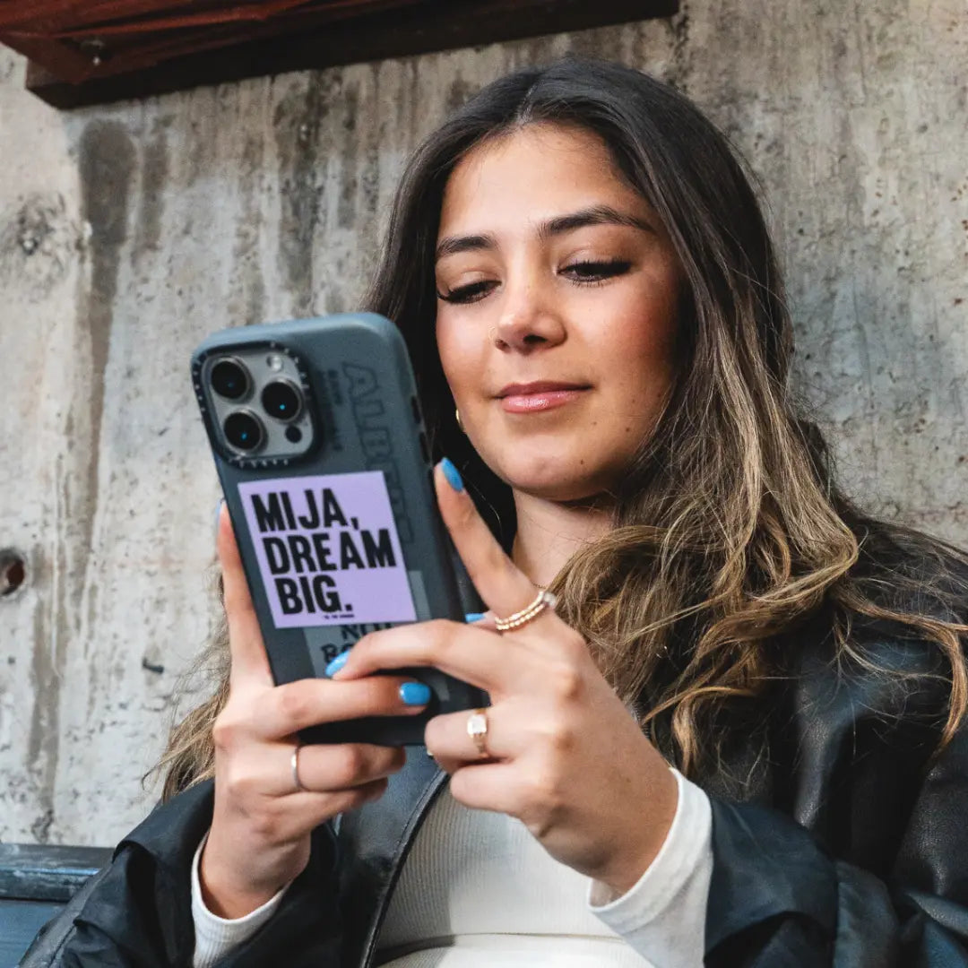 Haz que cada día sea una declaración de empoderamiento con la Carcasa Mija, Dream Big Edition. Inspirada en el mensaje audaz y motivador de "Mija, Dream Big" de Vel The Wonder, esta carcasa te recuerda que no hay límites para tus sueños y que cada paso cuenta.
