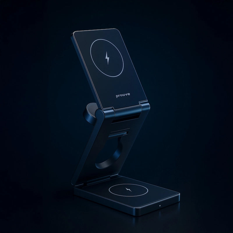 Descubre el Cargador Inalámbrico MagSafe ProTravel™ by proove, la solución definitiva para cargar tus dispositivos con estilo, eficiencia y el más alto estándar de la industria. Este cargador inalámbrico 3 en 1 combina un diseño minimalista, materiales 100% metálicos y funcionalidad avanzada para mantener tu smartphone, smartwatch y auriculares siempre listos para usar.